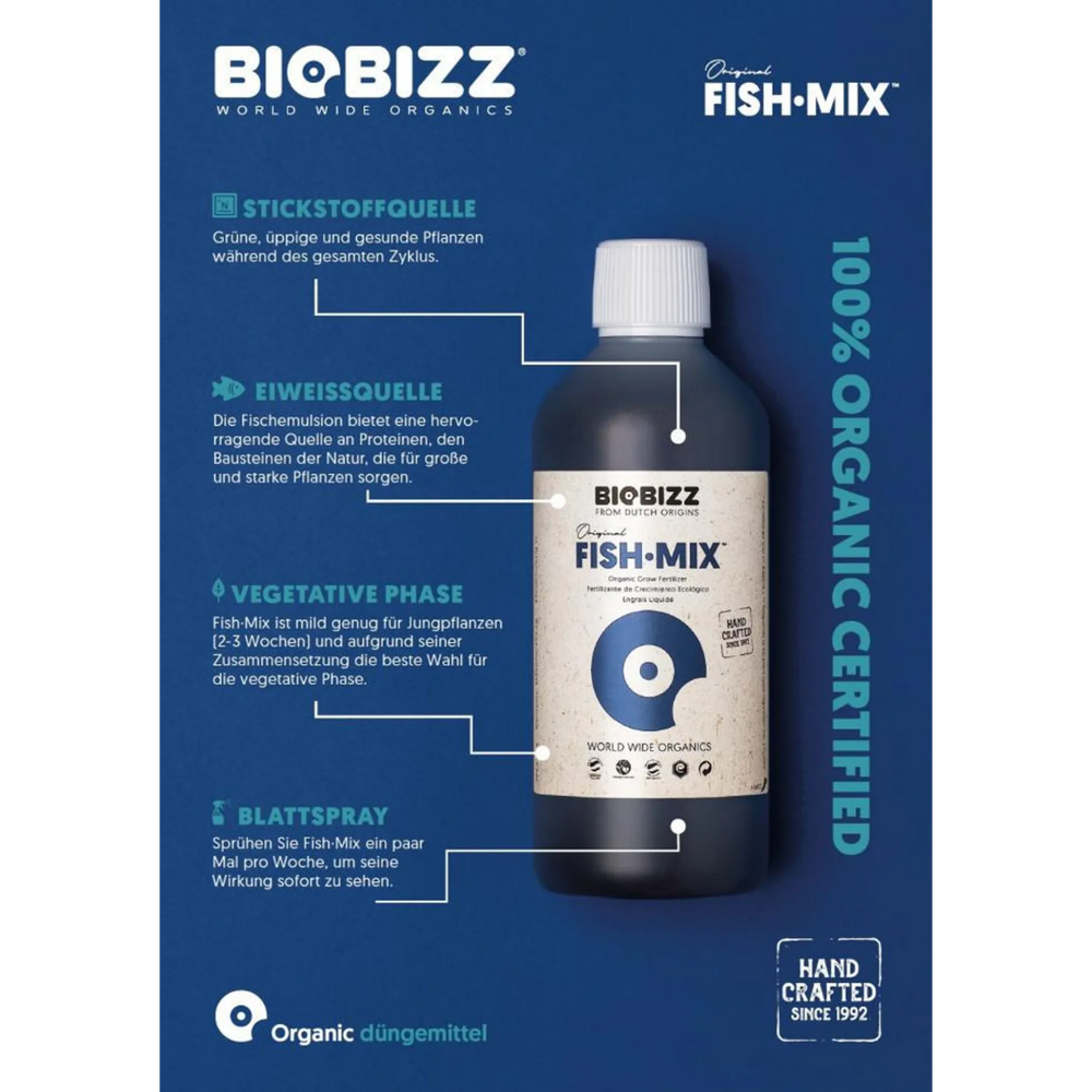 Biobizz Fish-Mix ist ein hochwertiger, 100 % organischer Wachstumsdünger, der auf einer einzigartigen Mischung aus Fisch Emulsion aus der Nordsee und Zuckerrübenextrakt aus den Niederlanden basiert. Entwickelt für kräftige, grüne Pflanzen, fördert dieser natürliche Dünger aktiv die Entwicklung von nützlichen Mikroorganismen im Substrat und sorgt für ein lebendiges Bodenleben.