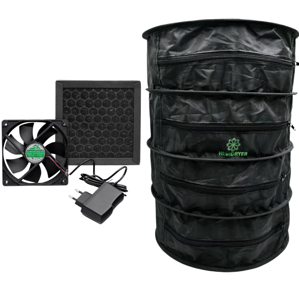 Die durchdachte Belüftung von unten nach oben ermöglicht eine gleichmäßige Trocknung in nur 7 Tagen. Der Aktivkohlefilter reduziert unerwünschte Gerüche, während das atmungsaktive Netz überschüssige Feuchtigkeit nach außen transportiert. Der HerbDryer ist klappbar, platzsparend und ideal für die diskrete Trocknung zu Hause.