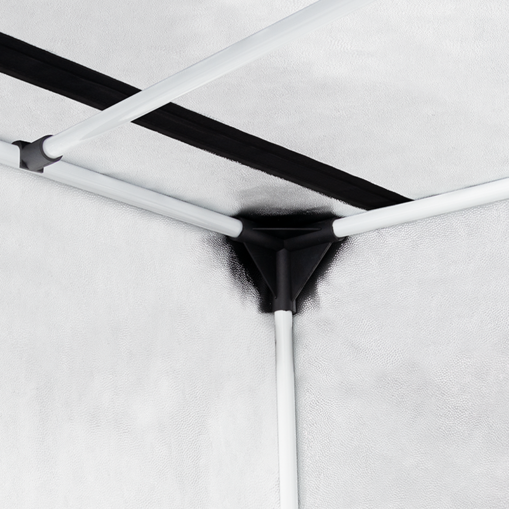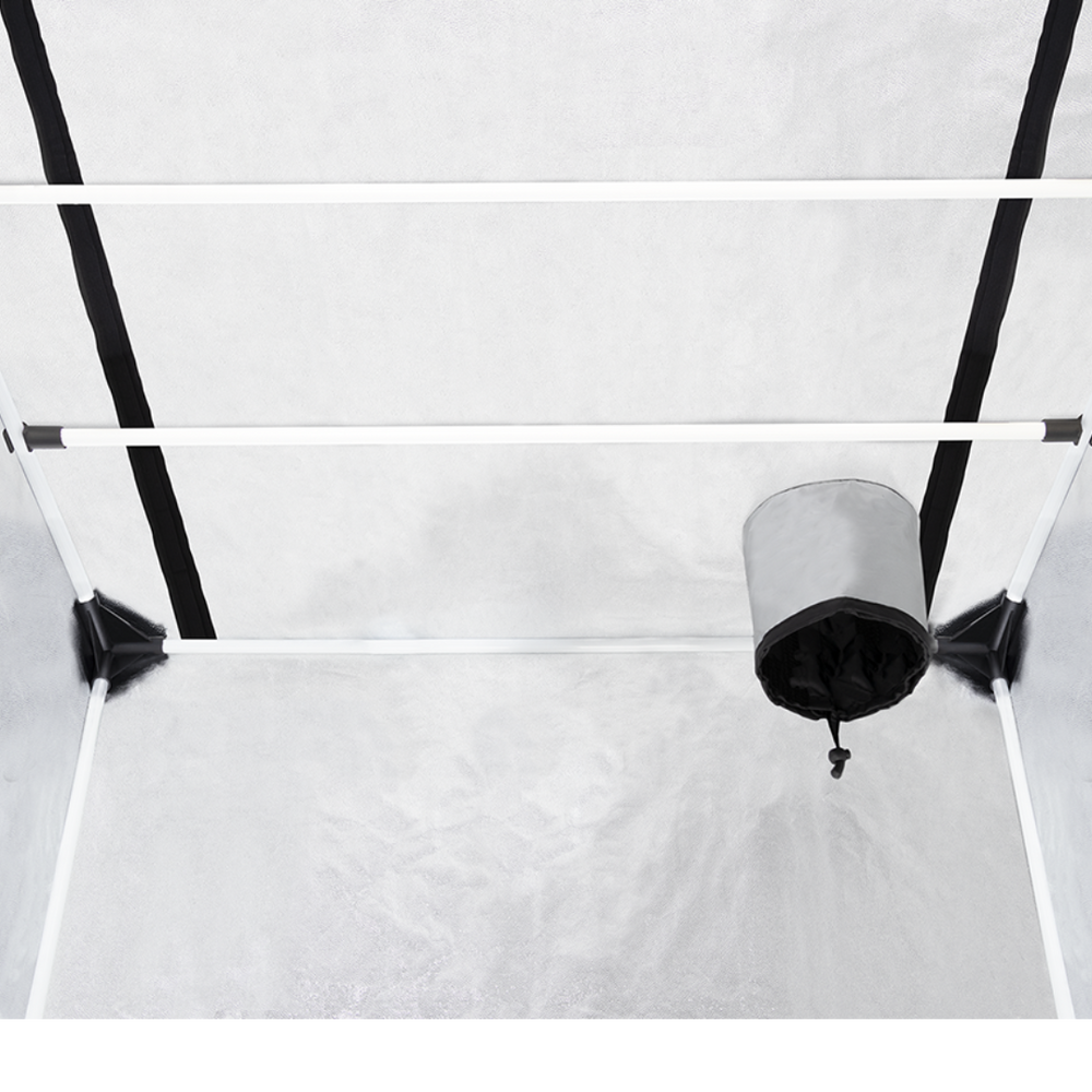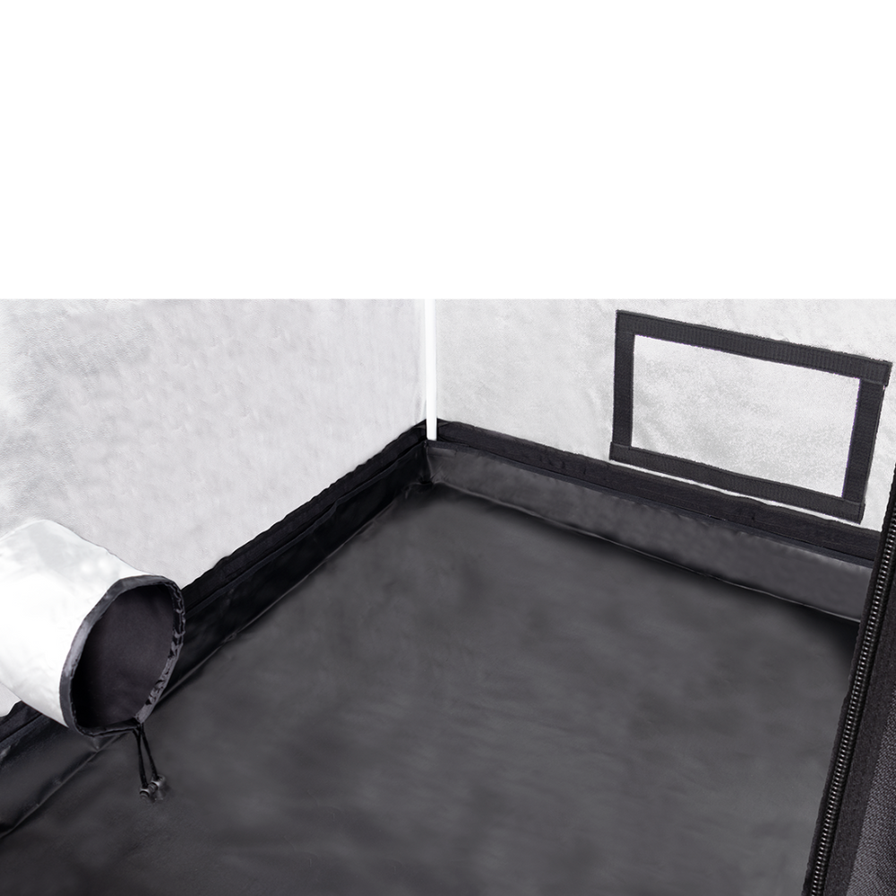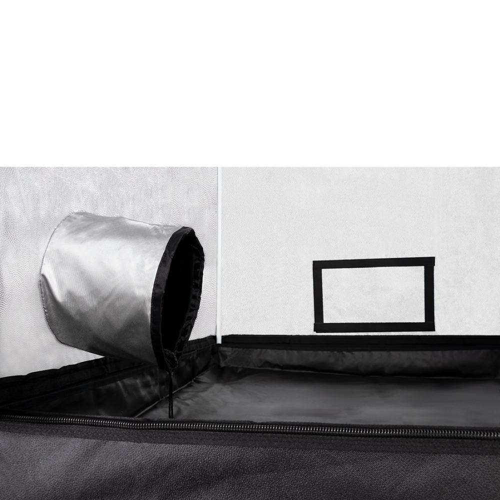 Dank der hochreflektierenden Mylar-Beschichtung (97 %) wird das Licht optimal verteilt, was das Pflanzenwachstum fördert und den Ertrag steigert. Die Außenhülle aus robustem 420D-Nylon mit lichtdichten Reißverschlüssen sorgt für Stabilität und Langlebigkeit. Zwei Abluftöffnungen und eine Zuluftöffnung garantieren eine gleichmäßige Luftzirkulation. Besonders praktisch ist das Sichtfenster – so kannst du deine Pflanzen kontrollieren, ohne das Klima im Zelt zu stören.