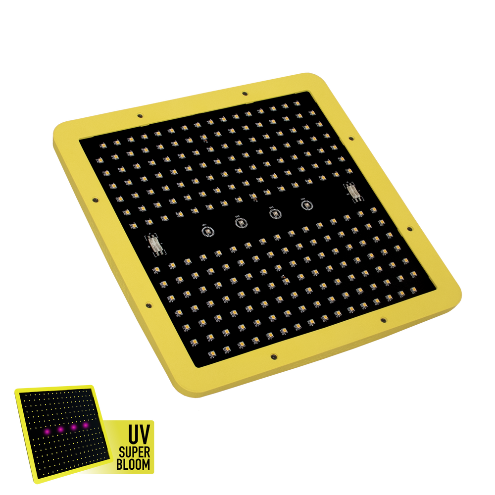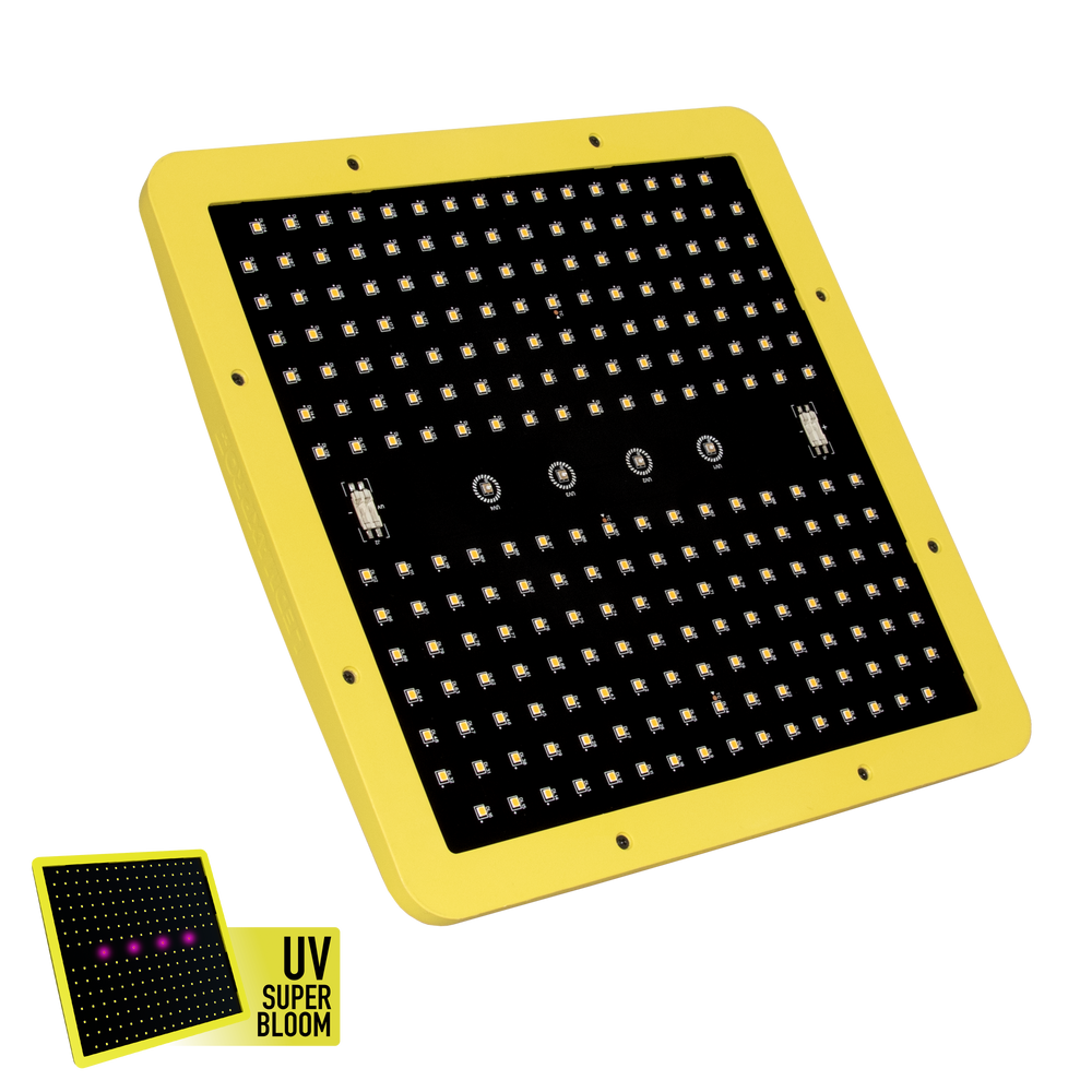 Die LEDMAXPRO 150W UV Super Bloom von Garden Highpro ist die ideale LED-Grow-Lampe für Indoor-Gärtner, die maximale Leistung und einfache Bedienung suchen. Ausgestattet mit 224 hochwertigen Samsung LM282B LEDs und 4 UV-LEDs von Seoul Viosys (405 nm) bietet sie eine perfekte Kombination aus 3000K Vollspektrumlicht und UV-Boost, die das Pflanzenwachstum beschleunigt, die Blüte fördert und die Harzproduktion anregt.