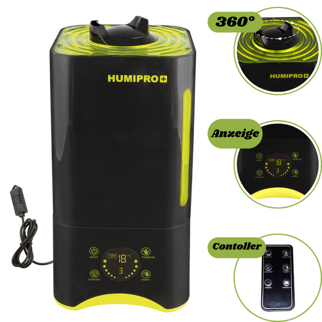 Der HUMIPRO von Garden Highpro ist dein idealer Begleiter für konstant gesunde Luftfeuchtigkeit – ob im Growroom, in Wohnräumen oder im Büro. Mit seiner externen Hygrostat-Sonde, 4 Liter Tankvolumen und drei präzisen Nebelstufen (150–250 ml/h) liefert er genau das, was deine Pflanzen oder dein Raumklima brauchen.