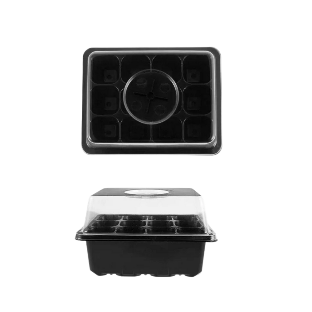 Das Mini-Gewächshaus in elegantem Schwarz bietet ideale Bedingungen für die Anzucht von bis zu 6 Pflanzen. Perfekt geeignet für Cannabis-Samen, Stecklinge oder andere Jungpflanzen. Dank seiner kompakten Maße (19 × 14,5 × 11 cm) passt es in jedes Indoor-Setup oder ins Gewächshaus. Das hochwertige 3-teilige Design schafft ein geschütztes Mikroklima, minimiert das Risiko von Schädlingen und sorgt für eine optimale Keimung und kräftiges Wurzelwachstum.